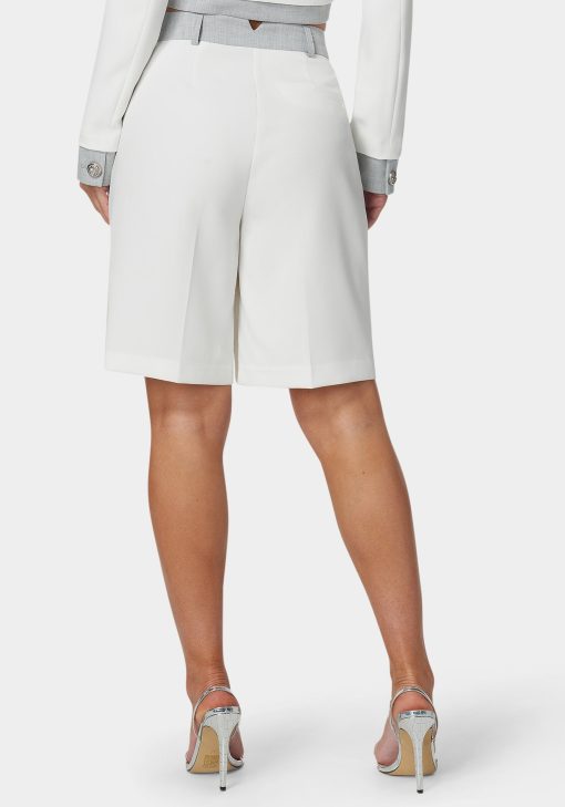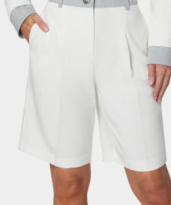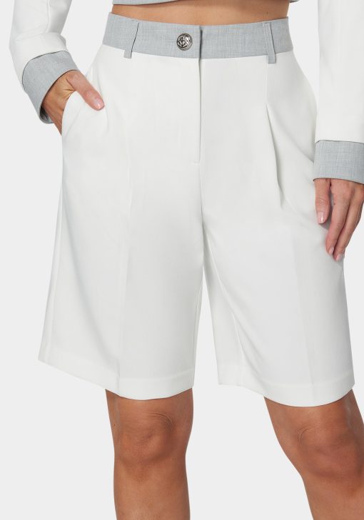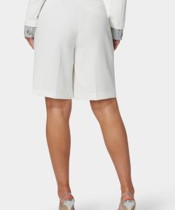 Create a totally unique look with our retro-inspired, tailored bermuda shorts. Key Features: Front Fly Zipper Opening Metal Shank Button At Front Waistband Side Seam Pockets Belt Self Loops At Waistband 10″ Bottom Inseam Material & Care: Body A: 72% Polyester, 21% Viscose, 7% Spandex; Combo B: 67% Polyester, 29% Rayon, 4% Spandex Dry Clean Imported